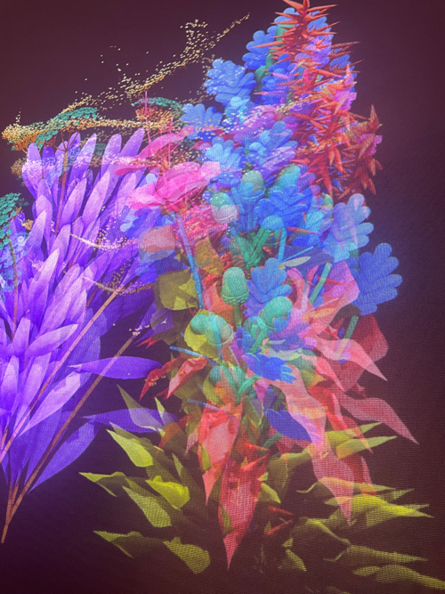 特に人気なのが、自分で植物のパーツを選んでスクリーンに映し出せる参加型展示。ダイヤルを回すと植物をモチーフにした美しいアニメーションが広がり、子どもでも楽しめる工夫がたくさんあります。
