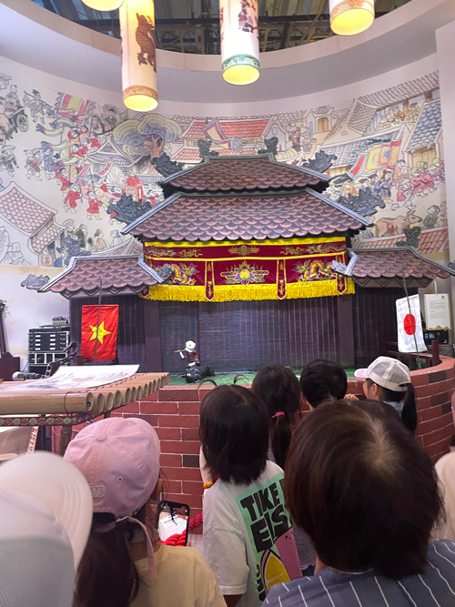 ベトナムの伝統芸能「水上人形劇」はこのパビリオンの大きな目玉。ステージでの上演は