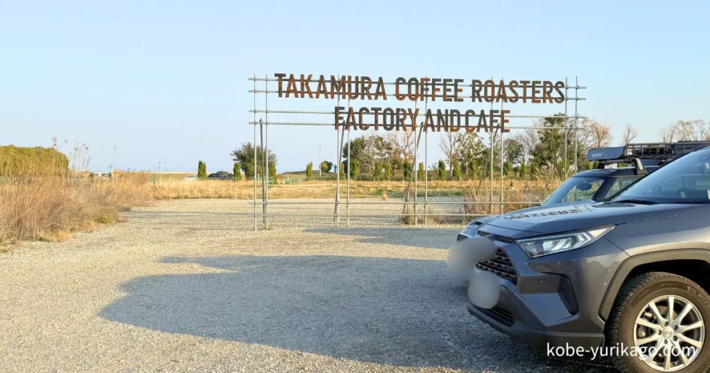 広い駐車場が完備されています。駐車場には大きなタカムラコーヒーのロゴが描かれていて、来店した記念に写真を撮っている人も多いスポットです。ただし夕方の土曜日に行ったときでもかなり埋まっていたので、週末のお昼前後は混み合う可能性があります。早めの時間帯に訪れるか、平日を狙うと安心です。